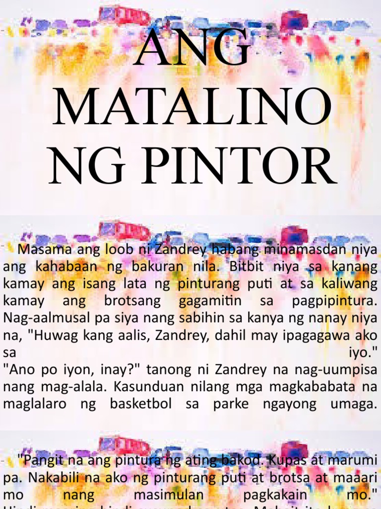Ang Matalinong Pintor Masama ang loob ni Zandrey habang minamasdan niya ang kahabaan ng bakuran nila. Human translations with examples. View Ang Matalinong Pintordocx from GEOGRAPHY 101 at Agincourt Collegiate Institute.