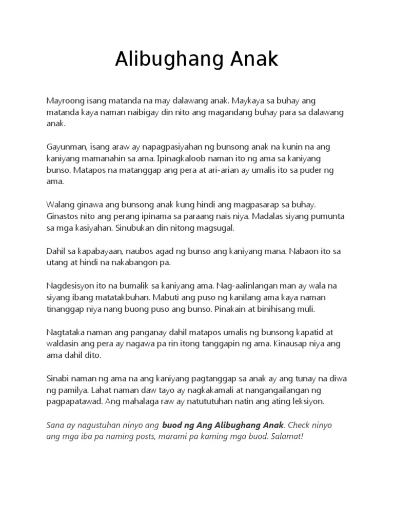 Pero dapat maaga pa lamang ay tumigil na sana ang kanilang ama sa kanyang bisyo ng pag-inom ng alak. Ang Maikling Kwento Tungkol sa 12 Kahilingan ni Benny sa Pasko. Up to 24 cash back Dahil Sa Anakimpormasyon Dahil Sa Anak.