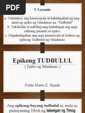Epiko Ng Mindanao Na Tudbulul Febie Marie E Tejado Pdf