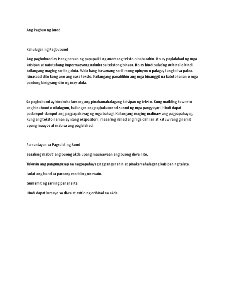 Tinitingnan nito ang mga frequency at distribusyon ngunit hindi sa kung ano ang ibig sabihin ng mga salita. Basahin ang 5 Halimbawa ng Maikling Kwento na may Aral. Paraan ng pagbubuod Kung ikaw ay magbubuod basahin mo muna pakinggang ang isang teksto na nais mong gawan ng buod.