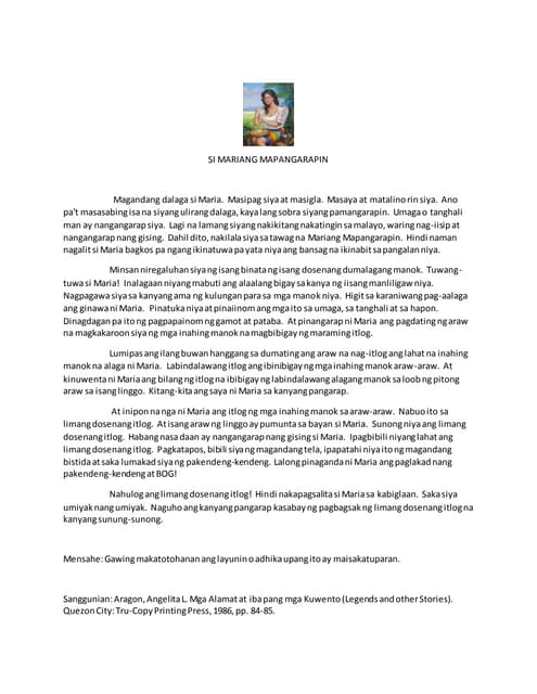 Hindi naman nagalit si Maria bagkos pa ngang. Buod ng kwentong bayan na si mariang mapangarapin. Ano pat masasabing isa na siyang ulirang dalaga kaya lang sobra siyang.